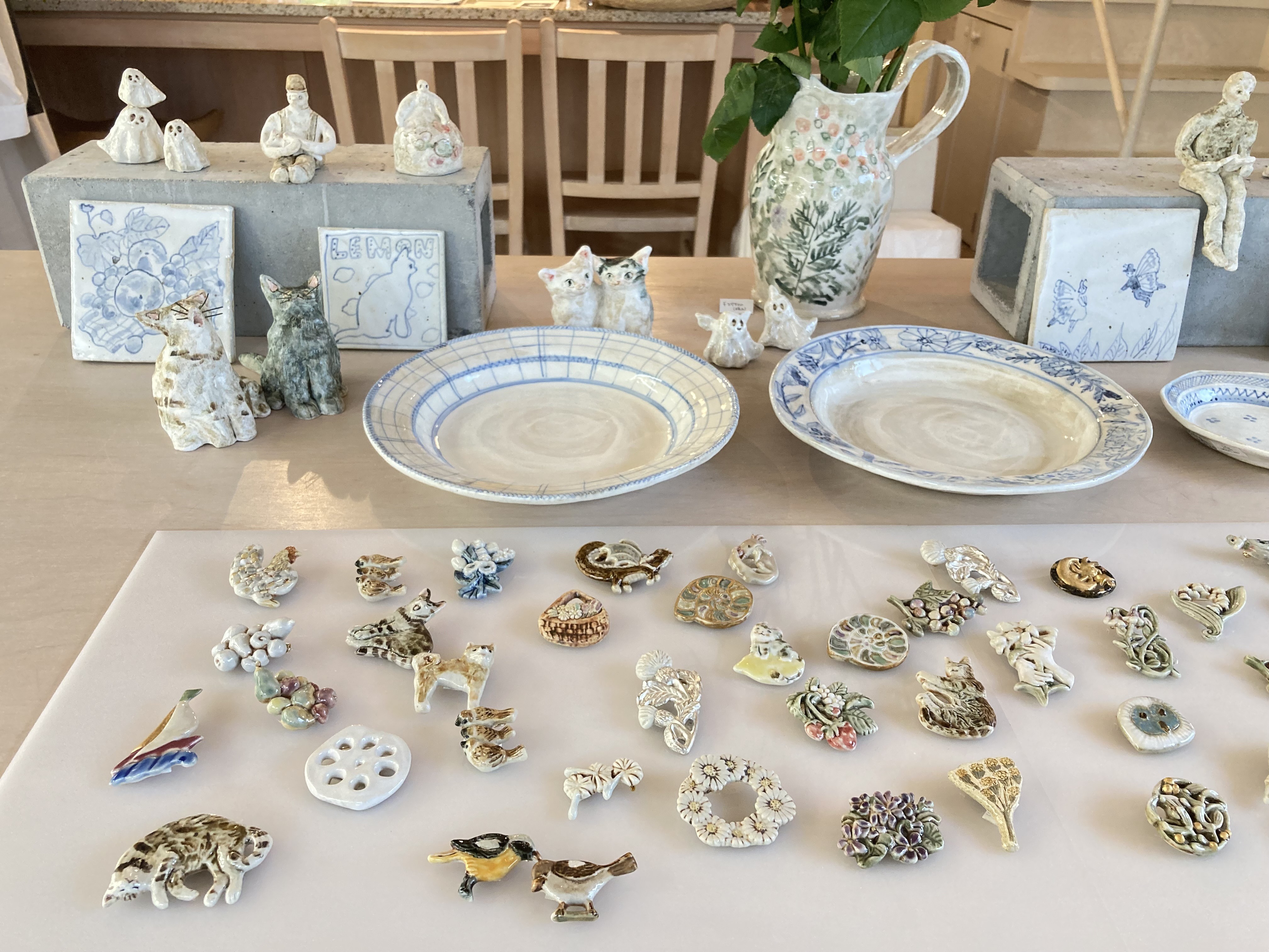 ブローチ、人形、お皿、マグカップ、ピッチャーなどいろいろご覧いただけます。