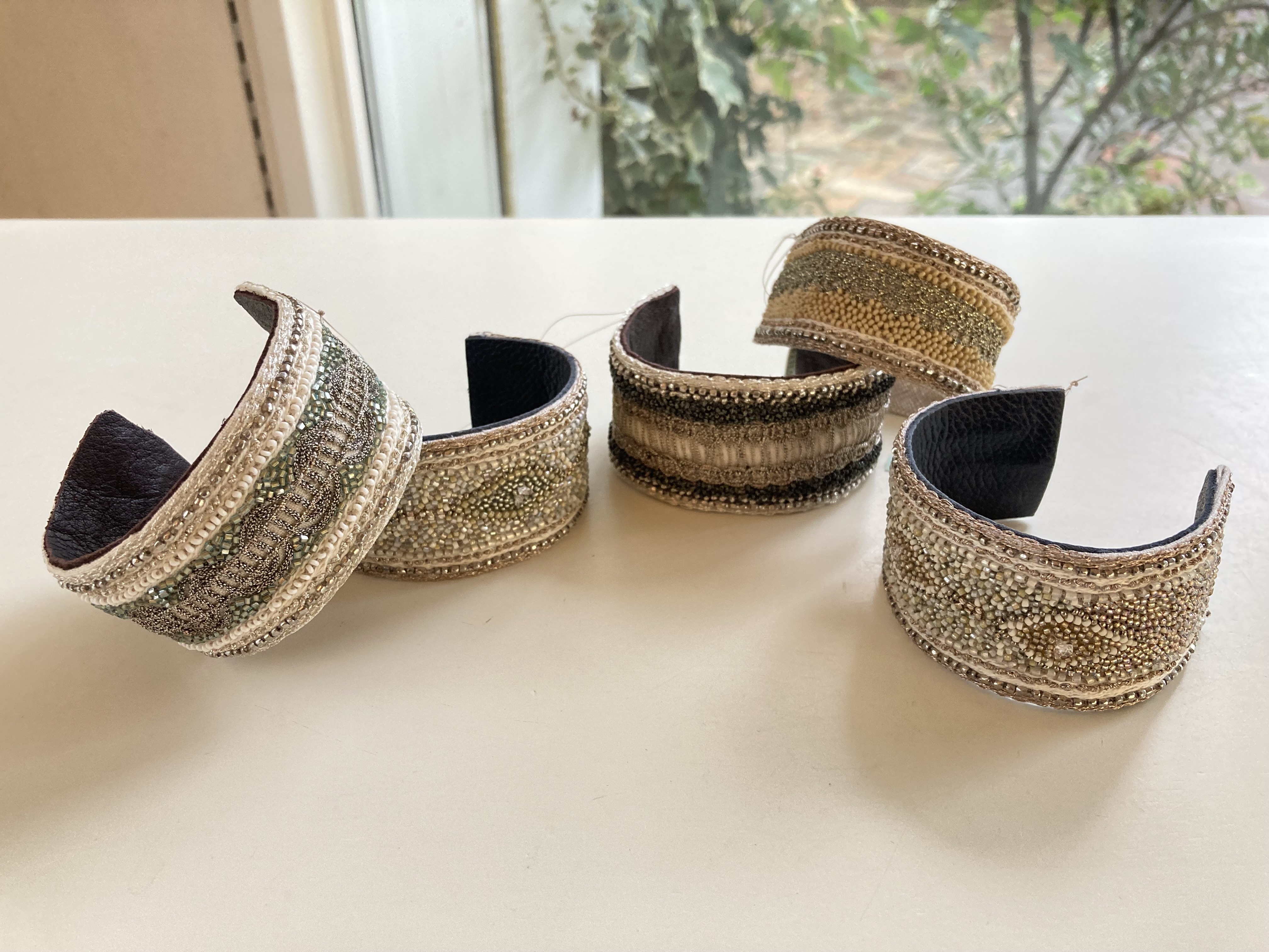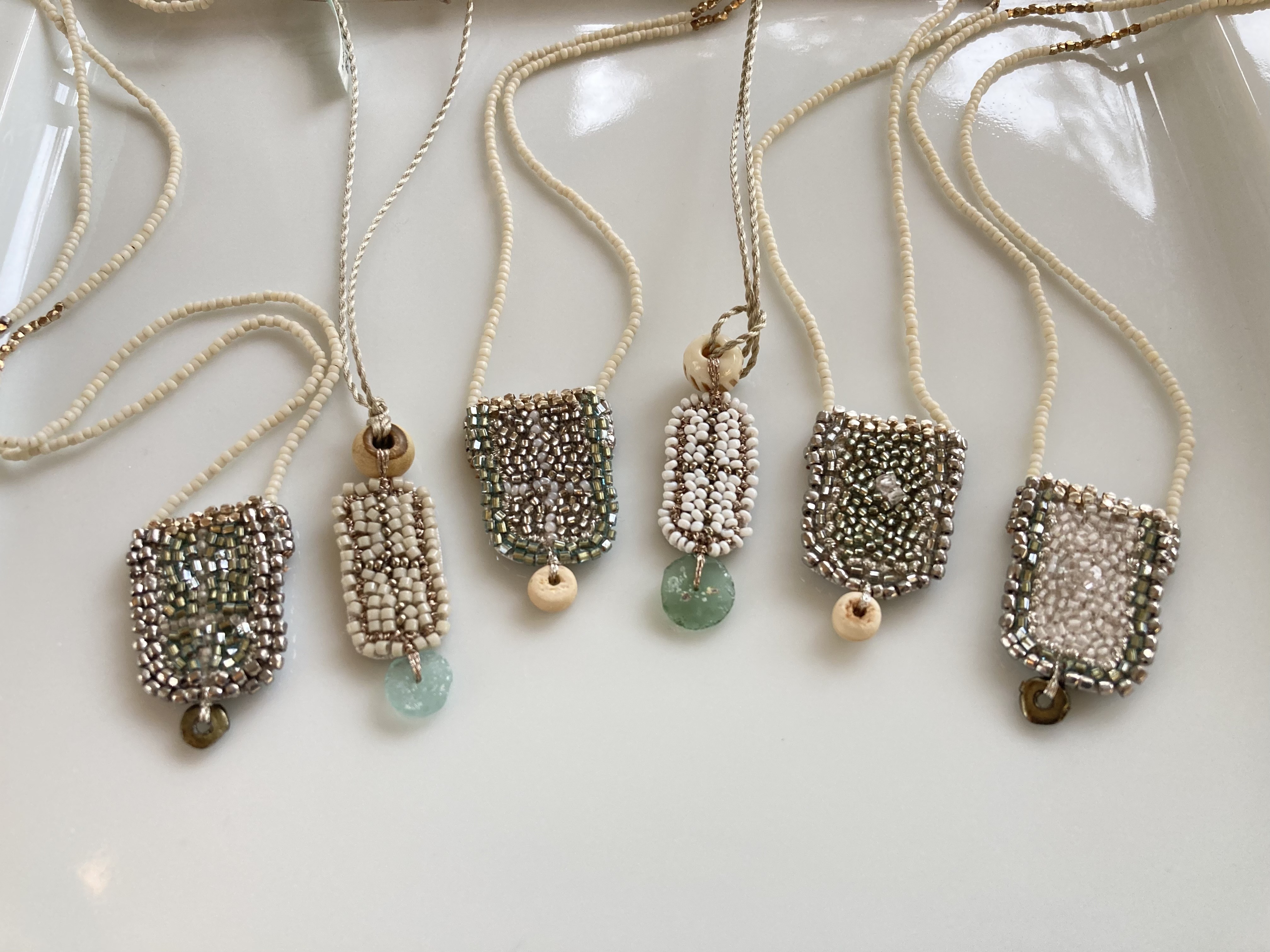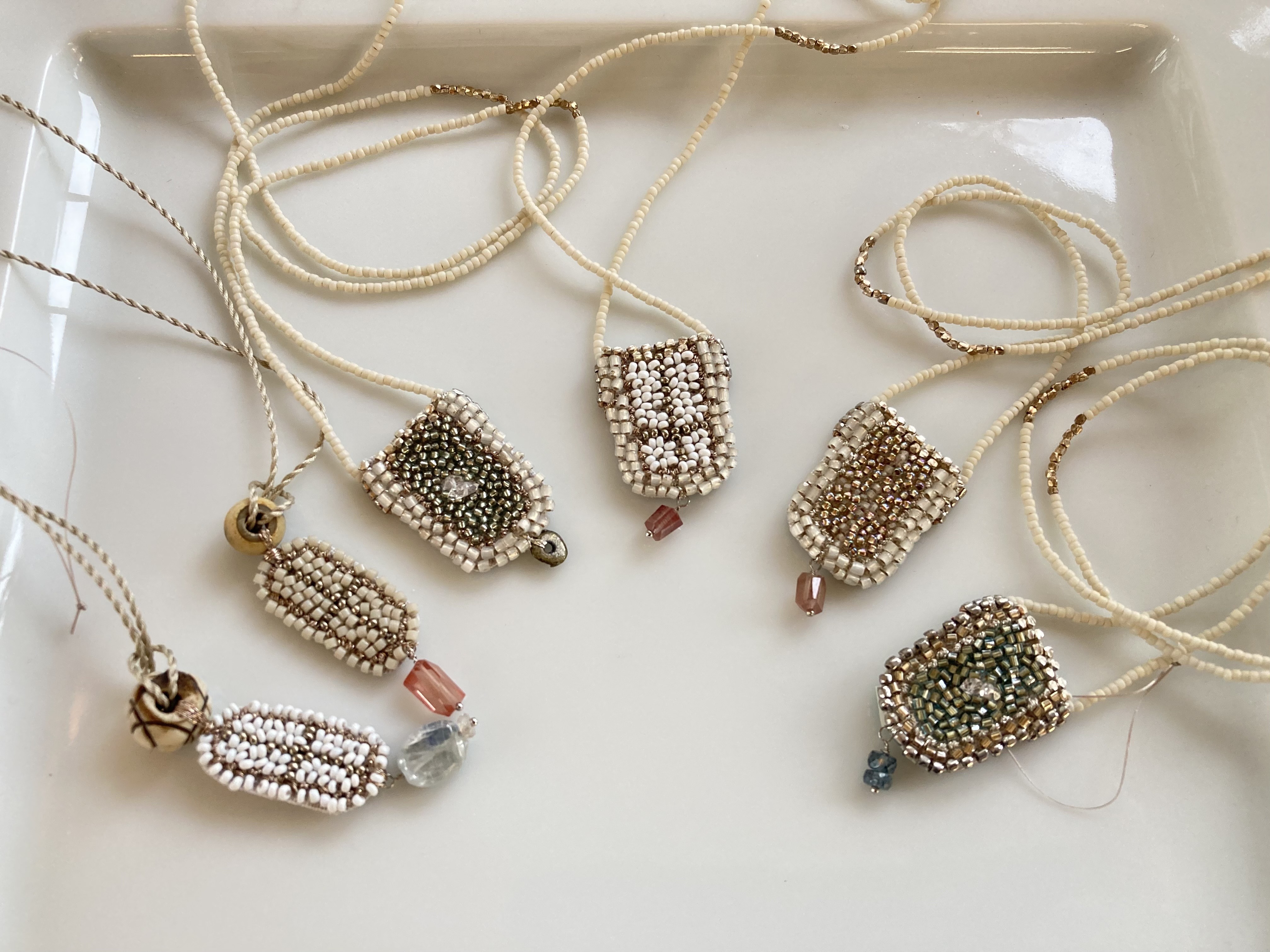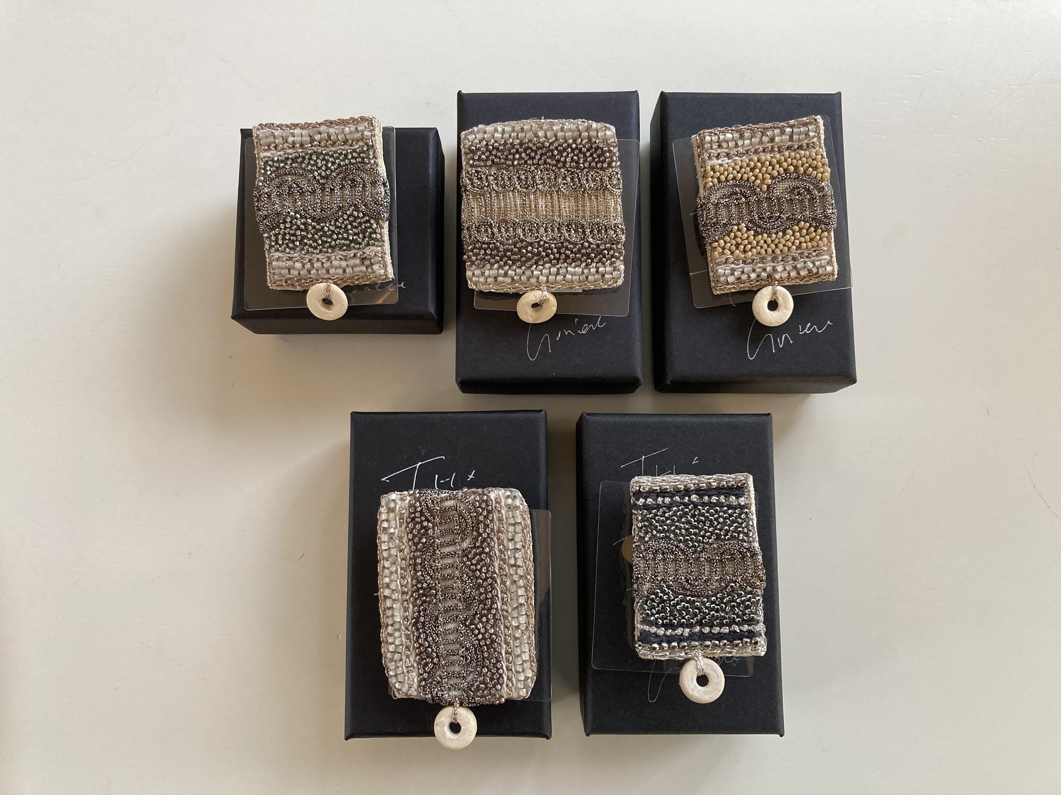 アンティークと天然石、さまざまなビーズを使った刺繍装身具です。